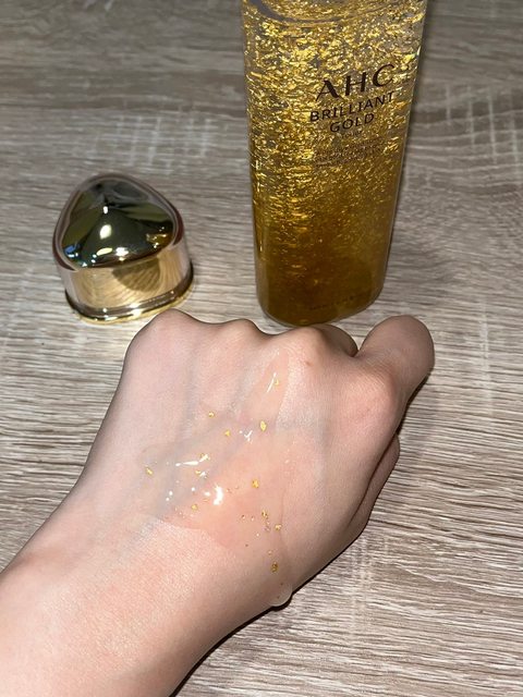 質地剛倒出來有點半透明果凍感,裡面有肉眼可見的金箔