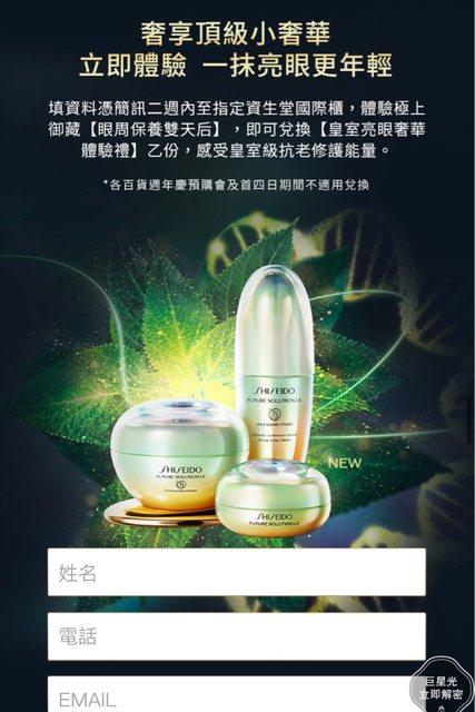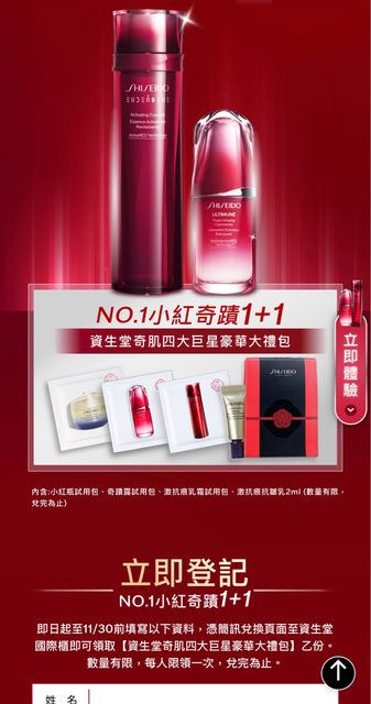 標題[情報] 資生堂國際櫃五系列免費試用兌換