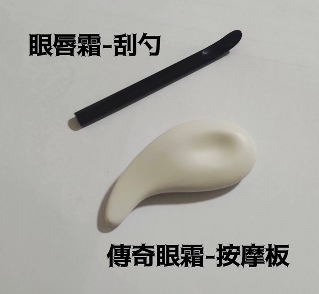 傳奇眼霜裡面附的比較高級,是白色陶瓷的勾玉按摩板