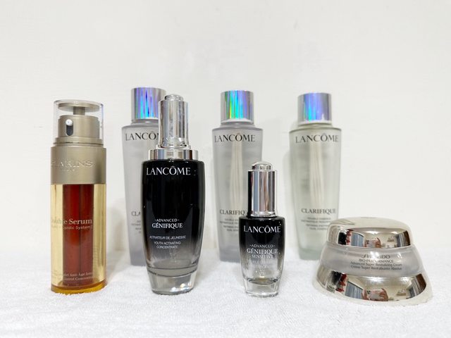 分別有蘭蔻極光水、小黑及小黑安瓶、雙激萃和百優乳霜