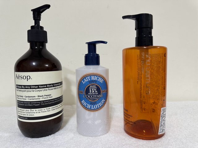 身體保養分別是Aesop的玫瑰潔膚露和歐舒丹乳油木身體乳