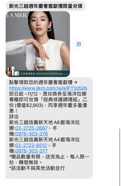 逛新光時候收到了簡訊又順便去LA MER換東西