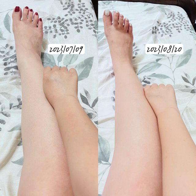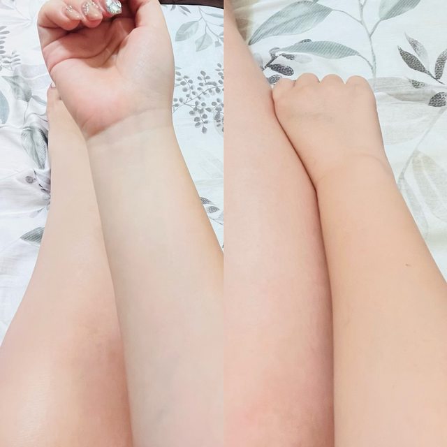 : 圖中小腿的部分因為我都穿長褲,基本上是沒曬黑的狀態,拿來當作原生膚色對比剛剛