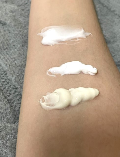 質地擠出來跟挖出來,從上至下分別是Cerave、雅漾、艾芙美