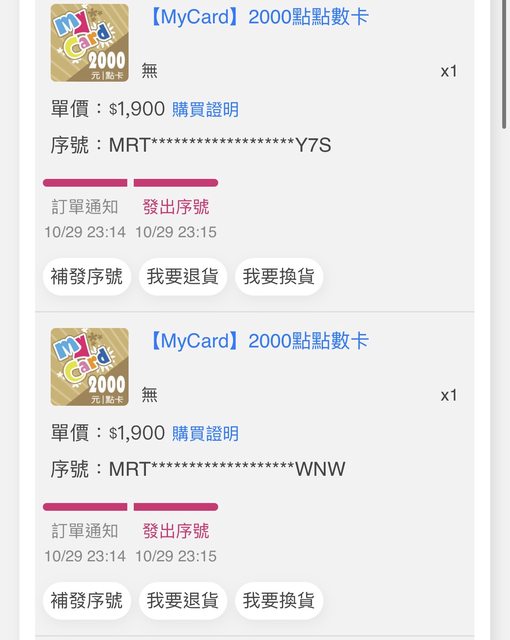標題[PC] 售MyCard點數 3000*1 2000*2 88折