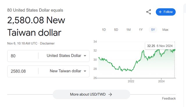 美金兌台幣五年區間走勢圖