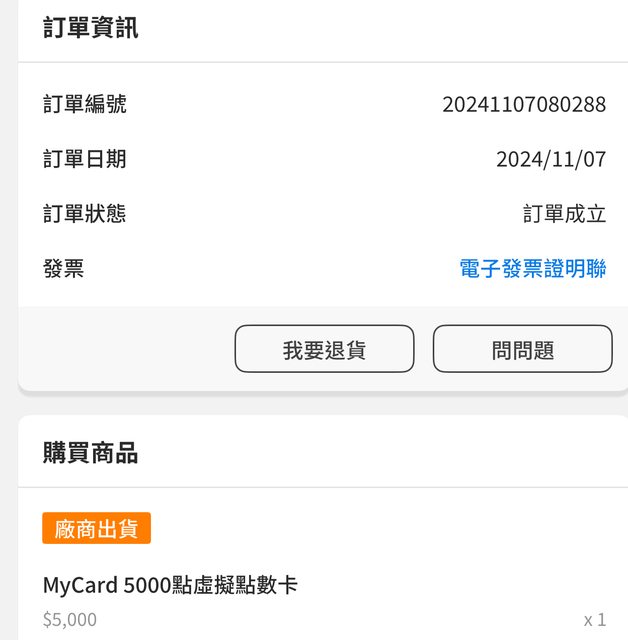 ★【物品名稱】:mycard點數 5000點