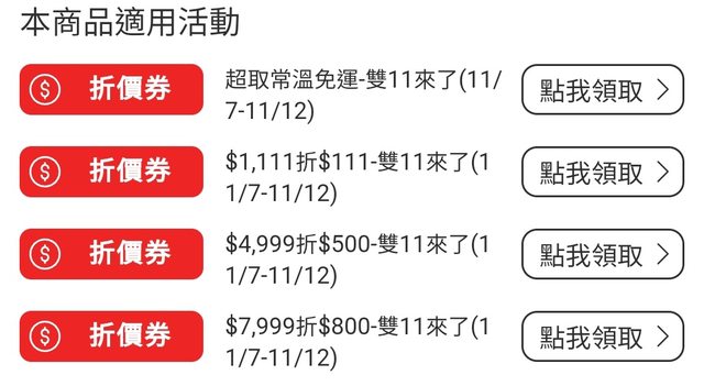 現正活動有免運、1111-111、2399-250