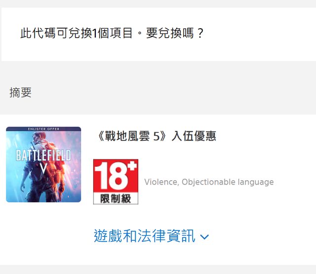 戰地5預購特典未使用如上圖 (但因未載明期限,不保證還能兌換)