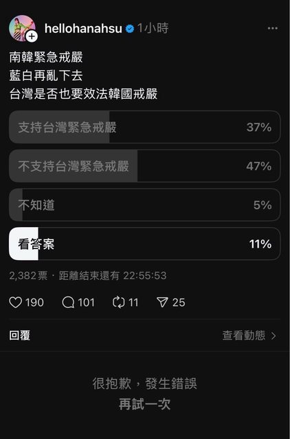 → Winston13840: 滾下台 哪一黨戒嚴都一樣101.10.2.128 12/06 19:46