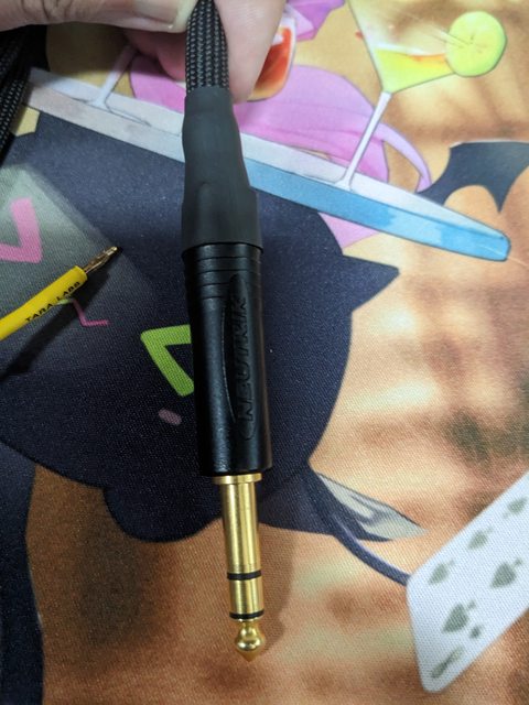 Xlr to 6.3的轉接頭,我查詢了官網正常應該還會有一對3.5,但當初其實連這條6.3都沒有,是後來跟老闆討論之後他拆給我的,值得一提的是,原本看之前各位大佬的心得,6.3公頭應該都是古河的碳纖,但目前今年「好像」有點cost down變成了neutrick的頭: