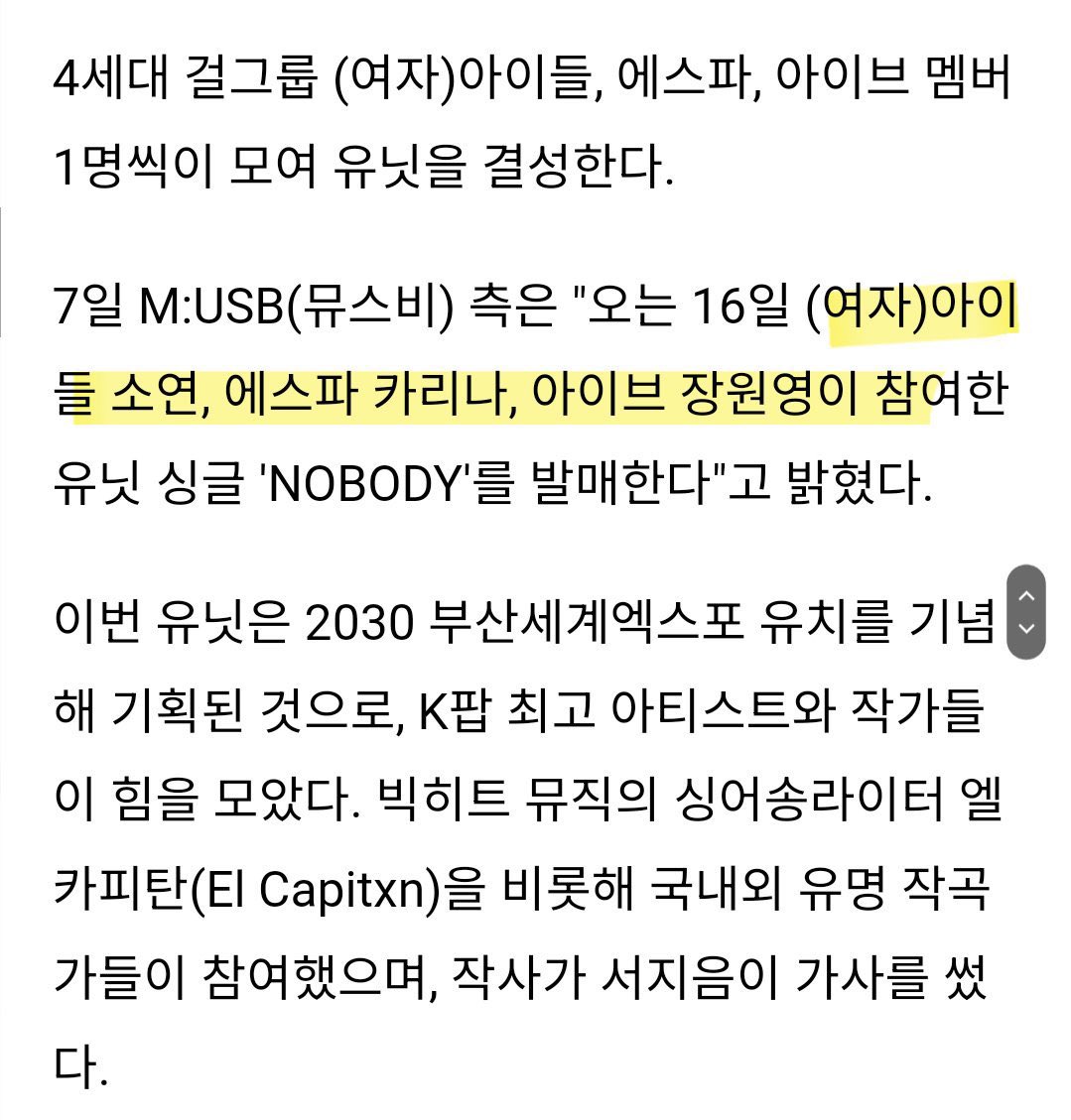 → bleach1991: 公權力在想讓KPOP幫忙他們爭取到世博 122.147.27.169 11/06 18:12