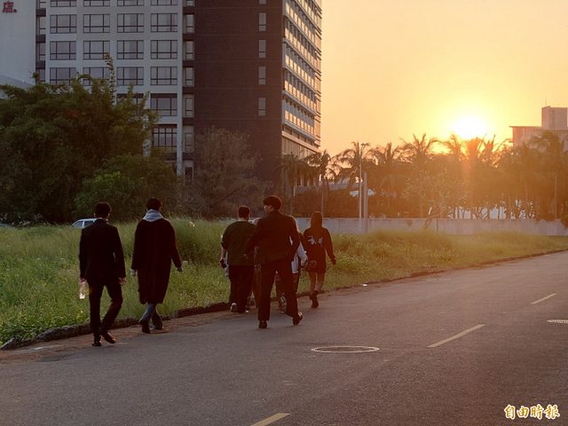 伐賞夕陽回飯店,一路跟同行夥伴有說有笑,充滿活力。