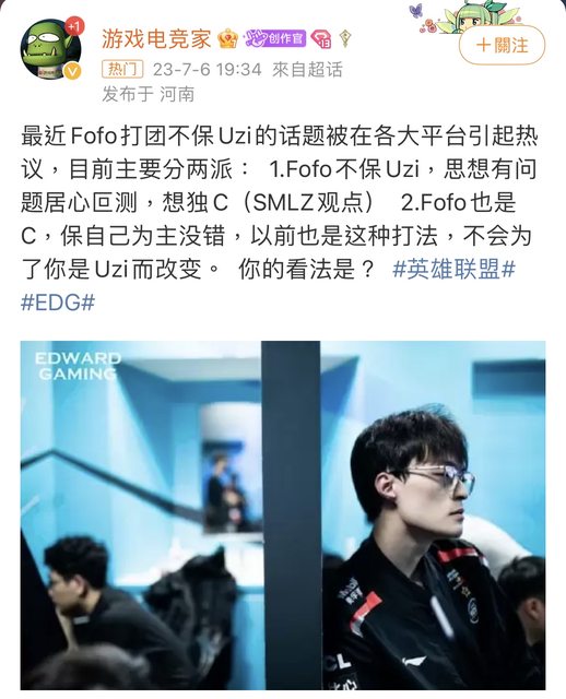 推 grizz233 : 還有看到很多EDG粉絲都怪FOFO沒保好UZI而去罵他 07/07 10:23