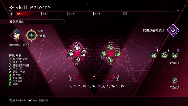 比起彼岸每個人只能裝四招被動來說算是好很多 但是有武器跟行動類型限制