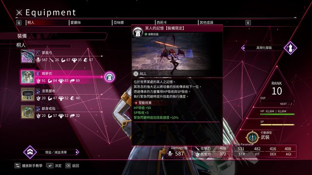 本作延續彼岸遊境的戰鬥設定 SP值固定300 普通劍技消費100 奧義200