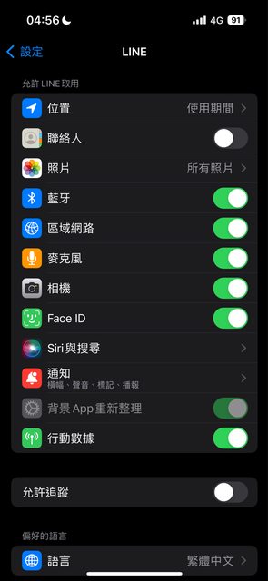 目前line的應用程式設定是這樣