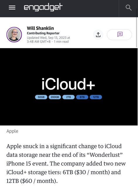 標題[討論] iCloud + 6TB 12TB 價格 ~