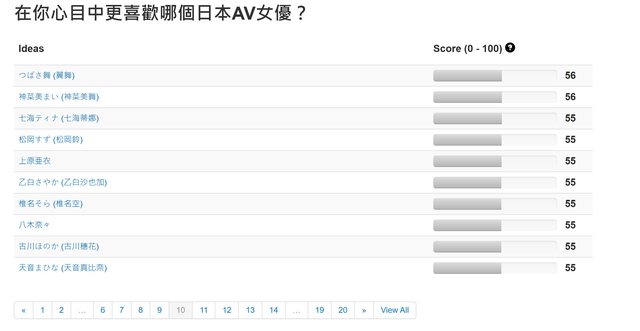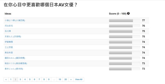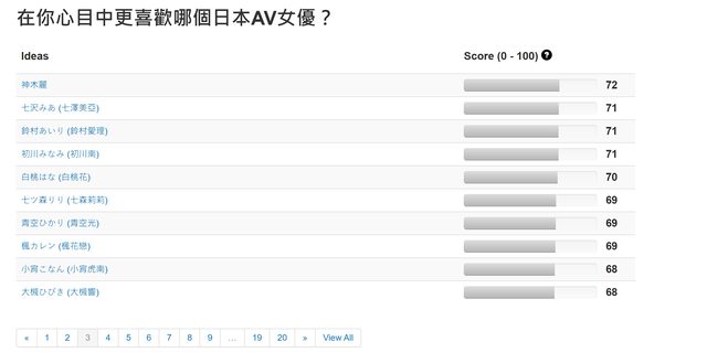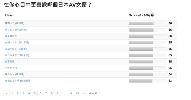 自己喜歡的女優。而這次的統計只有選出這200名中的前100名,如果希望查看