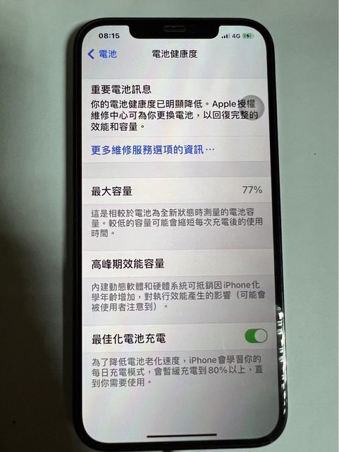 物品狀況:平常使用均有保護殼、保護貼、鏡頭貼,外觀完美,電池健康度77%