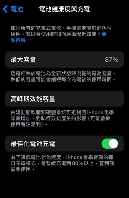 電池健康度87%