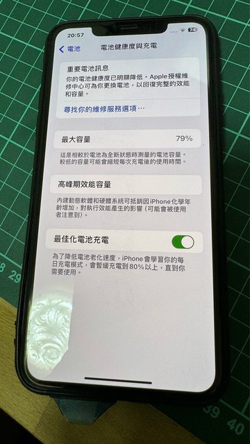 物品狀況:電池健康度79% 女用機,平常都是裝在保護殼內,有貼保護貼,未拆機維修過