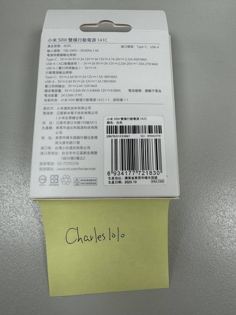 欲售物品:小米 50w 1A1C 雙模行動電源