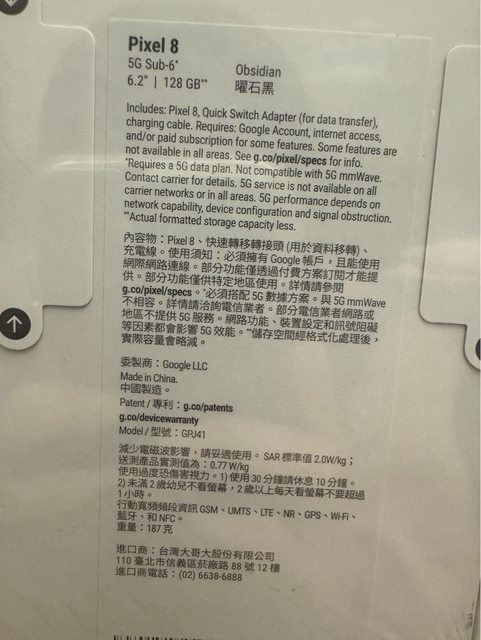 標題[賣/台中/面交]Google Pixel 8 128g 曜石黑