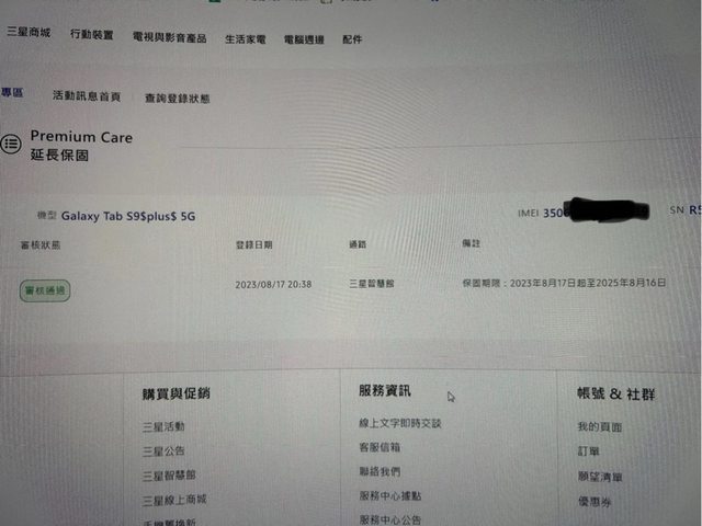 保固日期:三星網站查詢為2025/08/16