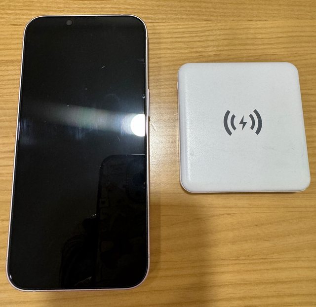 螢幕還有保護貼,背後鏡頭也有粉框鏡頭貼,再附贈一顆超輕巧5000毫安培可磁吸無線充