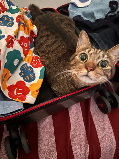 家中有一隻撿來的咖啡虎斑米克斯。