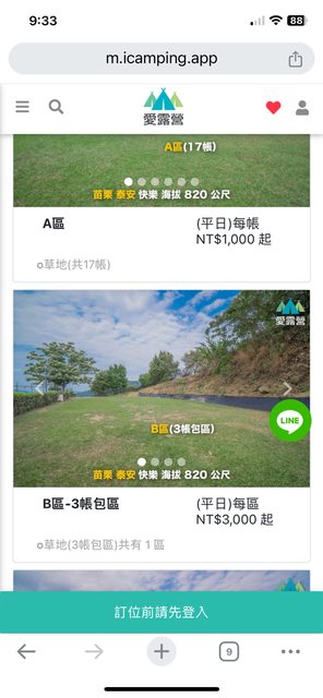 營地包區6000元(3天2夜)