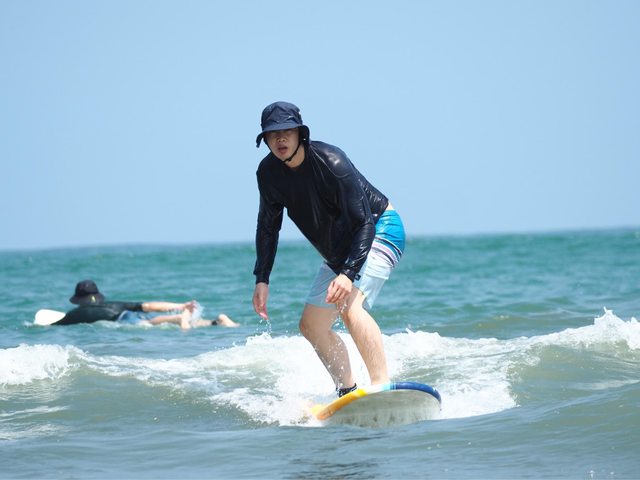 喜歡衝浪這項運動,雖然現階段還是被浪衝的小菜鳥,但很享受站上衝浪板的那一剎,頓
