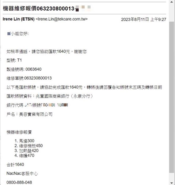 → schrei : 維修這價我會考慮買新的 08/13 15:19