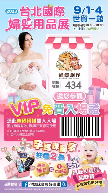 → jimmy911112 : 好康不能偷渡廣告喔…請看版規,婦幼展網站就有免費 08/31 13:05
