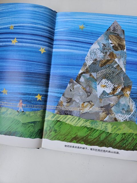 小茉莉的爸爸,拿來一座好長好長好長的梯子,架在好高好高好高的山上,爬了好久好久