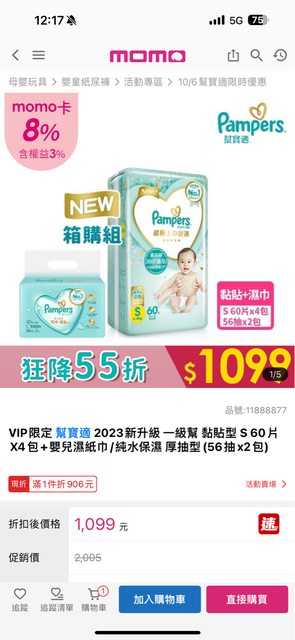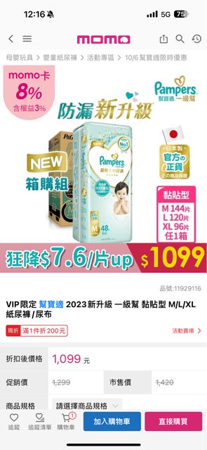 標題[好康] VIP幫寶適黏貼MLXL 一箱1099