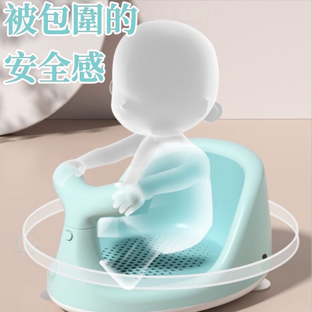 : 寶寶目前還沒辦法坐穩,而且她習慣坐著洗不是躺著
