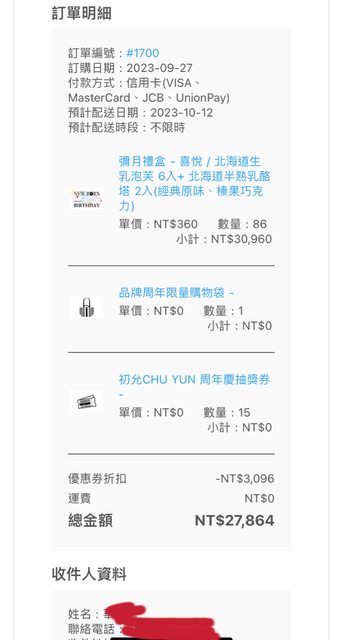 滿月剛好遇到國慶連假所以延後發送,