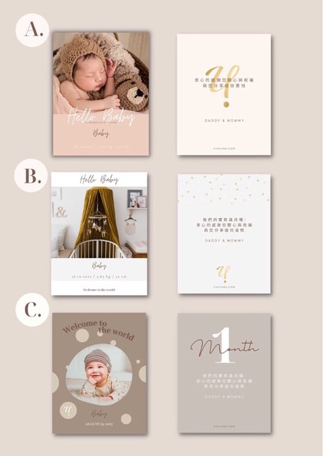 有三個版面的彌月小卡可以挑選,