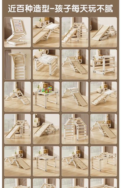 可以變化成攀爬架、滑梯、還有附畫板跟樂高板能當作遊戲桌