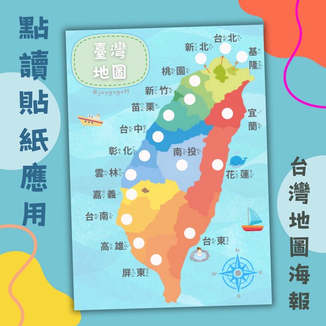 圖文網誌好讀版 https://joygogott.blogspot.com/2023/12/blog-post 之前有在板上分享一些鋪碼點讀海報 這次想直接用點讀貼紙自製 (不限點讀筆) 影片展示 https://youtube.com/shorts/UFf2NCNTy_I?si=6ZPuCrLbnLGnBqJS 想分享適合幼兒的地圖很久了~ 如果你的家裡 也缺少一張大大的台灣地圖 用孩子最熟悉的點讀筆 一起來認識我們生活的這塊土地 「台灣」吧 >地圖特色< 1.圖大字大有注音 2.適合任何有貼紙的點讀筆製貼 3.點擊貼紙會朗讀各縣市地名 其他互動: ~將每次旅遊地標加註上去變成旅遊地圖,也可貼上照片變成一整面牆XD ~指出「地點+阿嬤阿公」的居住地 >適用點讀筆< 所有可使用「點讀貼紙」製貼的點讀筆。 例如卡米、小行星、kidsread、南門筆、毛毛蟲筆、Cpen…. 製貼方法請詳閱各家點讀筆說明書。 >列印方式< 一般列表機彩色列印即可 >索取海報及音檔< 推文即可 — FB 強壯狗狗超人 IG joygogo.tt ----- Sent from JPTT on my iPhone -- ※ 發信站: 批踢踢實業坊(web-ptt.tw), 來自: 223.137.80.69 (臺灣) ※ 文章網址: https://web-ptt.tw/BabyMother/M.1703569839.A.786