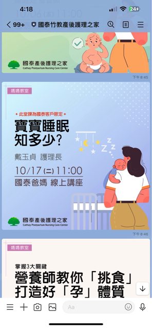 (6)有非常多產後的衛教課程,(live線上課),衛教真心很強,沒空看書沒關係,離