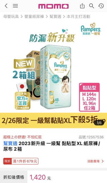 標題Re: [好康] momo 2/26一日限定幫寶適特價