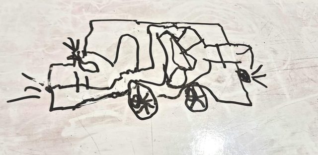且叫我挑戰。多啦a夢是我的作品,車子是孩子的作品。