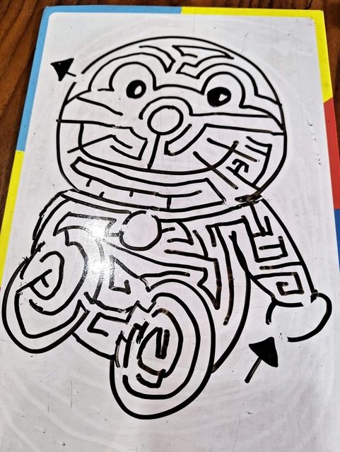 有一段時間兒子喜歡玩迷宮,我就畫迷宮讓他玩,漸漸地,他也會模仿我畫出一個迷宮並