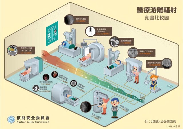 希望該做的檢查還是要做,輻射工作人員的劑量限值是一年20 mSv ,一般人是1 mSv(扣掉背