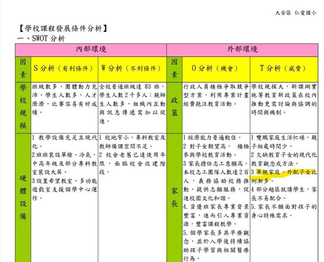 便看了112年的教程規劃,不看不知道一看嚇一跳,開頭針對學校的SWOT分析居然看到這