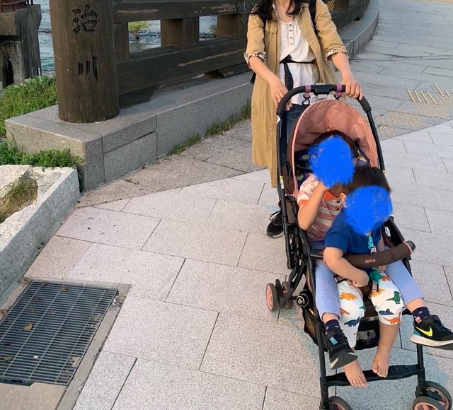 我第一次出國帶推車1、2,登機時家人覺得我有揹巾,就把兩台都托運,遇上飛機誤點,那