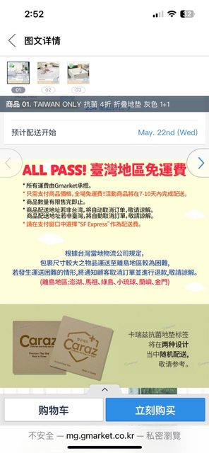 推 speca2c98 : 我記得這個Taiwan only 的免運,一直都只有這個連結 05/20 17:46